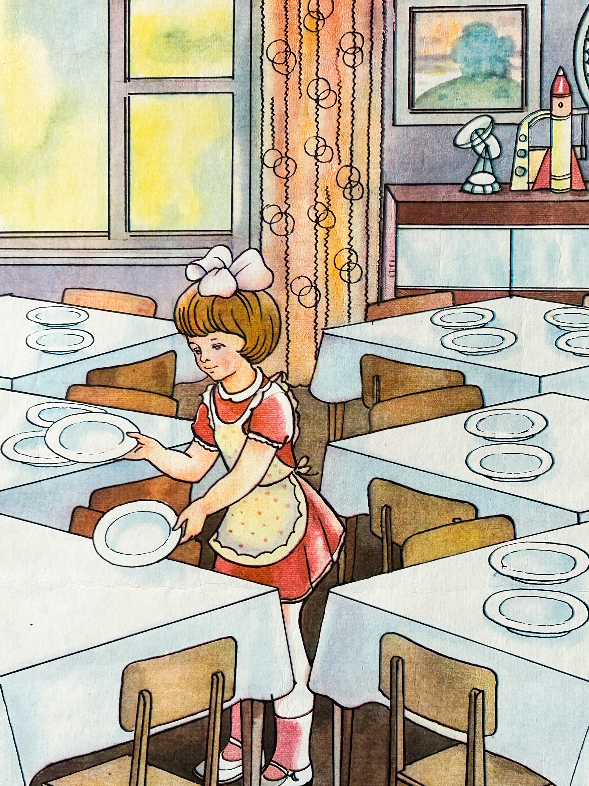 1983 Rare Original Ukrainian Vintage Double Sided Nursery Alphabet Poster: School Kids on Duty, Astronaut, October Revolution Propaganda | Soviet-Era Educational School Chart